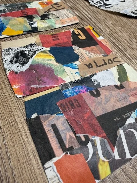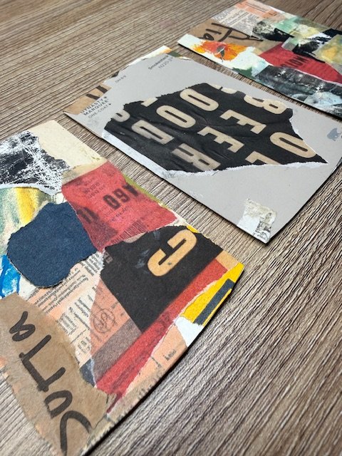 Lately I’ve been making what I’m calling Tiny Urban Collages — little collage studies on paint chips using tracing paper, scraps, and urban-inspired imagery. And the more I make them, the more I love how approachable they feel.