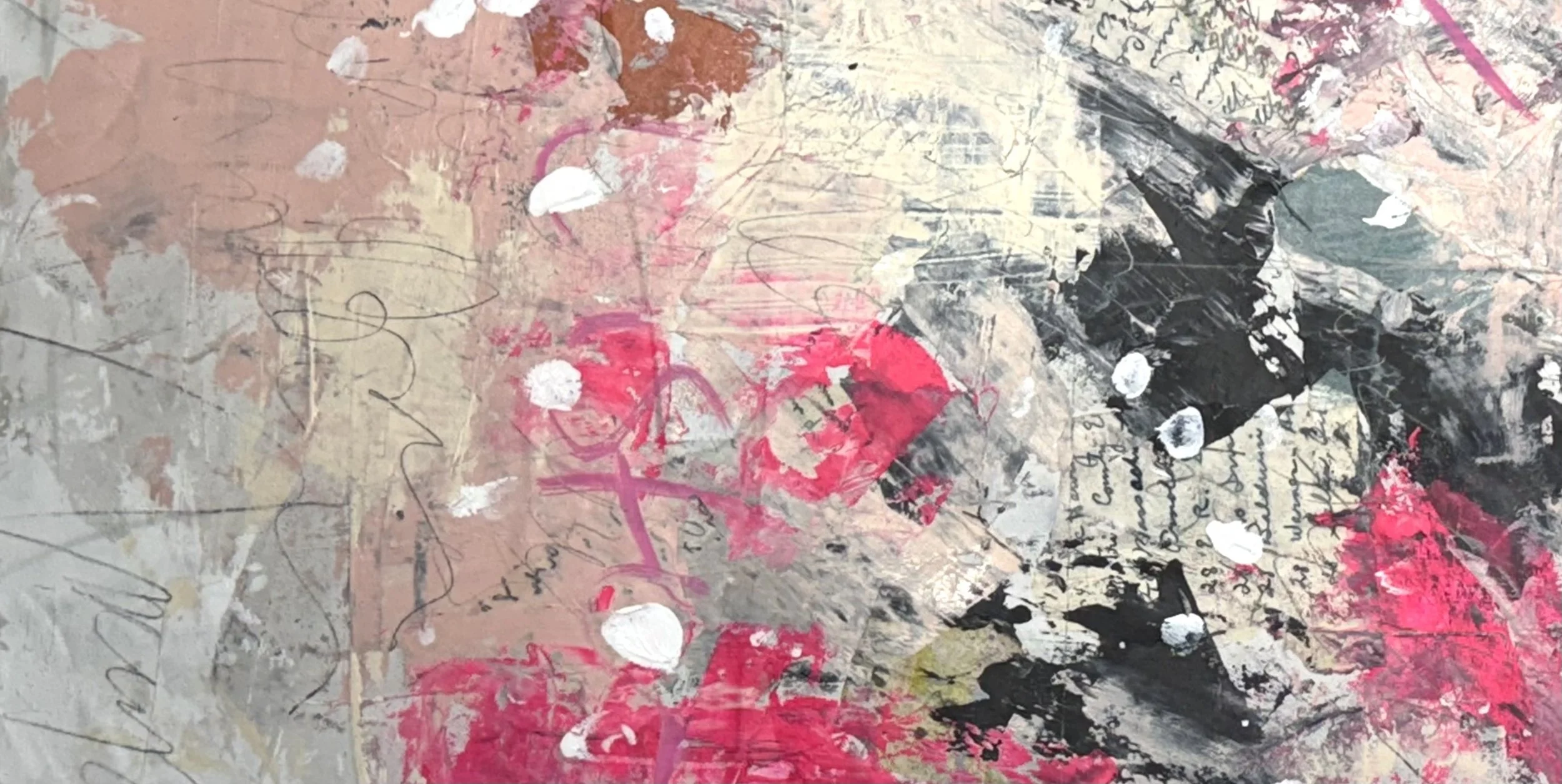 I’m a mixed media artist outside Chicago, living with my husband and two rescue goldens. After 25 years in the corporate world—and a major nudge to change—I went all in on my long-time passion for art.