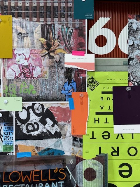 Pull together color, typography, textures, signage, and found details into a visual collection that sparks ideas and gives your artwork a strong starting point.