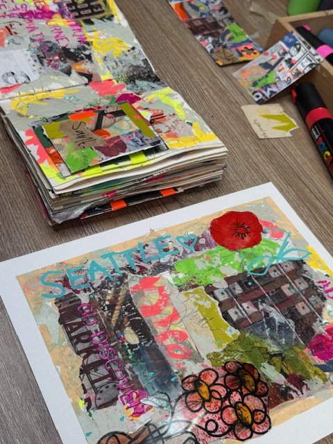 Everyday Explorations: Downtown Edition is a guided mixed-media course that helps you gather inspiration out in the world and bring it back to the studio with purpose. Along the way, you’ll learn how to notice what most people overlook, collect details that spark ideas, and build creative momentum through simple, approachable projects.