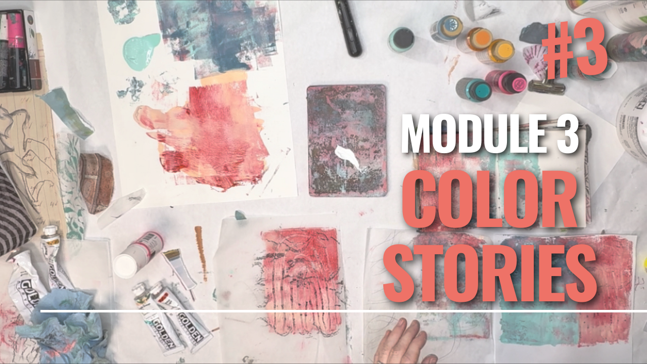 We’ll explore color stories inspired by your surroundings—mixing, matching, or going straight into your journal. I use a gel plate here, but simple household items work too. I actually shared a video years ago where I used household items to pull prints. You can check it out here.